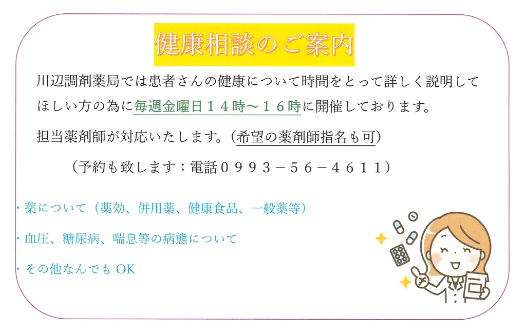- 川辺調剤薬局の書面掲示事項等は以下でご確認いただけます。川辺調剤薬局 ウェブサイト掲載事項